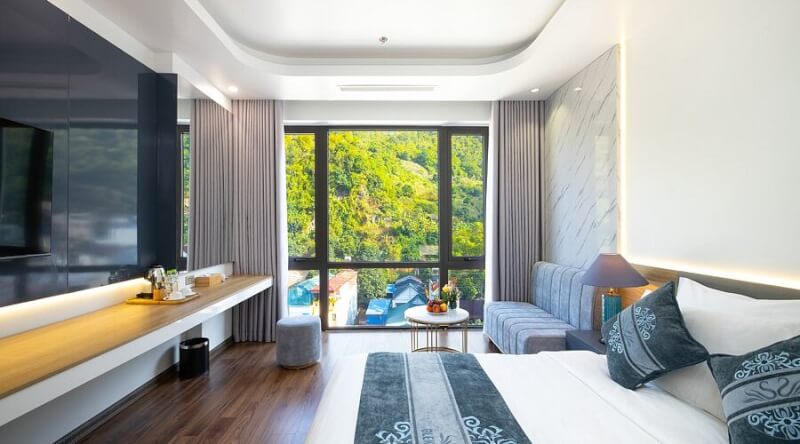 Glenda Tower Hotel is located in Moc Son ward, making a strong impression with its luxurious and cozy neoclassical design style. The hotel focuses on the smallest interior details and enthusiastic staff, bringing absolute relaxation to guests. The big plus point of Glenda is the restaurant on the high floor with a panoramic view of the entire beauty of the mountains and forests, helping you easily connect your journey to visit the waterfall and neighboring tea hills. Room prices range from 1,200,000 - 2,200,000 VND/night depending on the room type you choose.