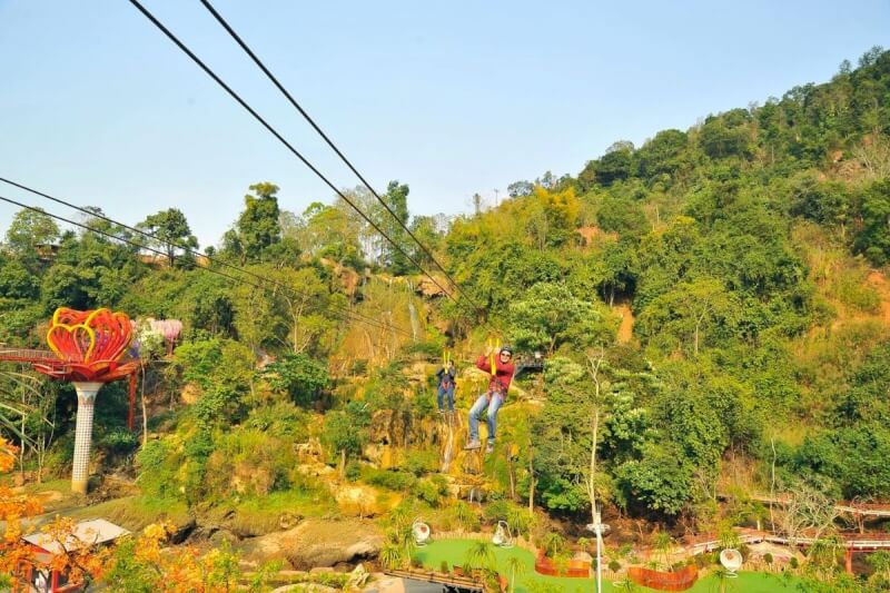 Located right on the Dai Yem Waterfall campus, the Zipline slide is an exciting, thrilling game for those who want to conquer their own limits. With a modern cable system and international standard protective equipment, you will be hanging in the air, rushing among the green tropical forest canopy and capturing the entire panorama of Dai Yem waterfall pouring down from a bird's eye view. This is a great opportunity for you to enjoy the cool mountain breeze, feel the spaciousness of nature and save "extremely adventurous" moments amidst the majestic space of Son La land. The cost for a flight between the mountains usually ranges from 150,000 - 300,000 VND depending on the length of the flight and the service package you choose.
