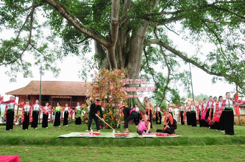 The Het Cha Festival usually takes place in March every year in Ban Vat, Moc Chau ward, and is an opportunity for people to give thanks to heaven and earth and the gods. This is a festival imbued with humanity with dance activities, love songs and fun folk games. Participating in the festival, visitors will be immersed in the bustling great solidarity circles, admire the unique worship rituals and feel the close and strong community bond of the White Thai people along the Yem River.