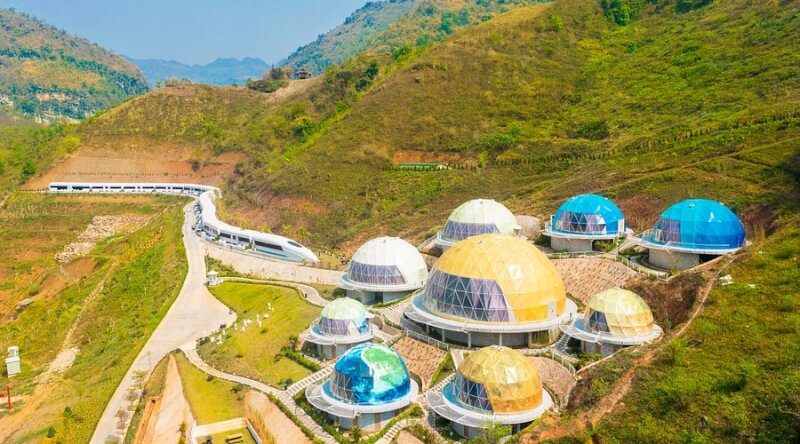 This is the "huge" resort and entertainment complex today, located right in Moc Chau ward, which is also where the famous Bach Long Glass Bridge is located. This resort offers train-shaped villas and unique cocoon-style rooms hidden among the cliffs, providing an extremely enjoyable sleeping experience in the heart of nature. Because it is located close to the waterfall area, visitors staying here can easily hear the sound of falling water and enjoy the refreshing atmosphere of the waterfall right from the balcony. Accommodation prices here range from 1,500,000 - 3,500,000 VND/night.