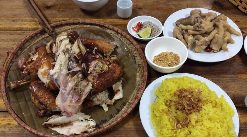 Ban Vat stream fish restaurant (Moc Chau Ward): Specializes in serving crispy fried stream fish and five-color sticky rice with native flavors right next to the foot of the waterfall.