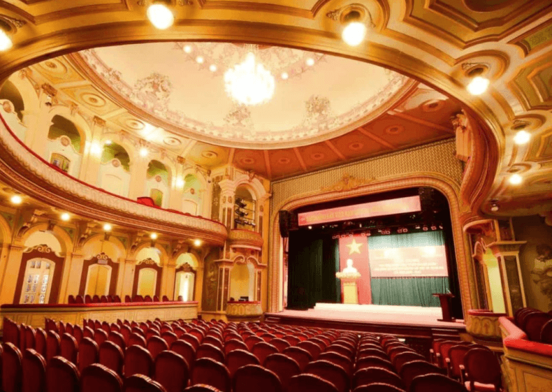 Step inside, you will be truly overwhelmed by the large auditorium designed in a horseshoe shape with three floors of luxurious seats. The entire space glows under the gorgeous crystal chandelier, highlighting the red color of the velvet carpet and the delicate gold-painted details on the wooden loft. The sound system here always maintains perfect natural resonance, helping each art performance become an extremely classy auditory experience.