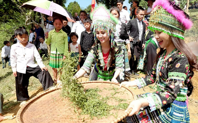 Shan Tuyet Tea Festival is a unique cultural event to honor the value of ancient tea trees and the long-standing tea making profession of highland residents. Within the framework of the festival, visitors have the opportunity to experience the tea picking process with villagers, watch a demonstration of handmade tea making on cast iron pans and enjoy the finest cups of tea. The festival not only promotes local agricultural products but is also an opportunity for the community to work together to preserve precious resources and promote the traditional cultural beauty of the majestic Ta Xua land.