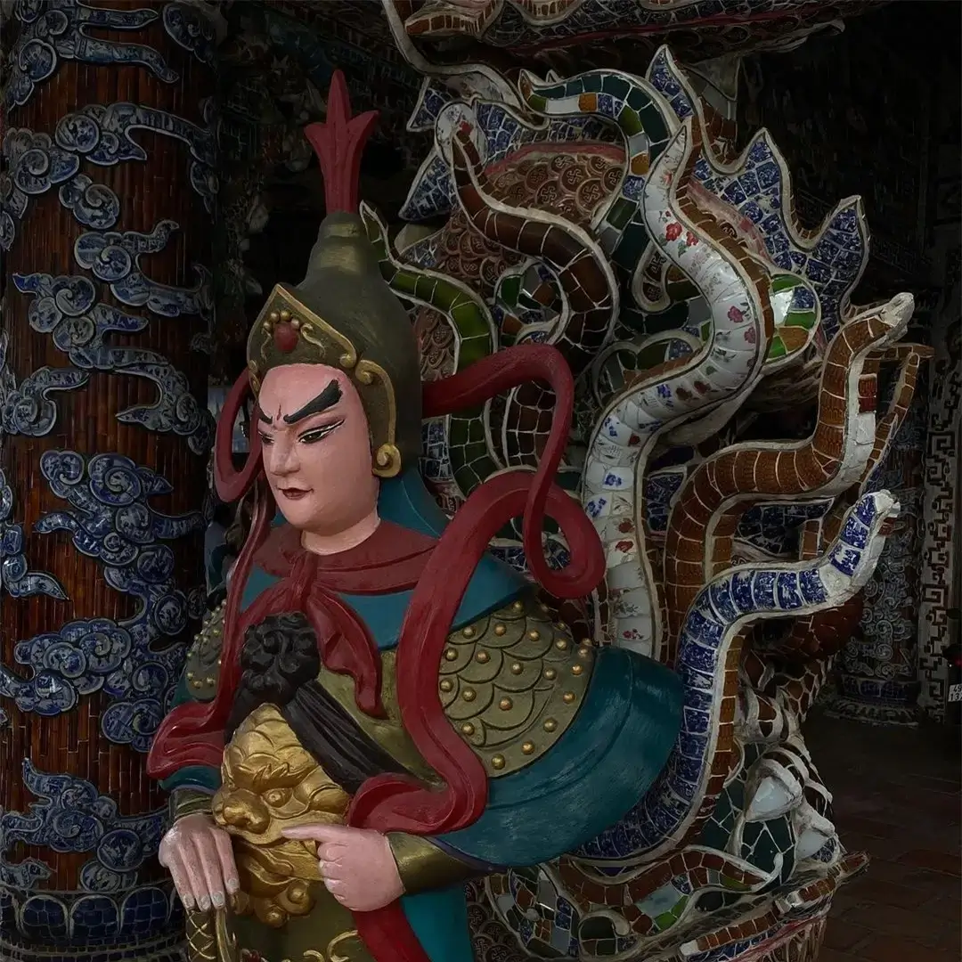 門の内側から見ると、この塔は、色、サイズ、素材が異なる何百万ものあらゆる種類の陶器、陶器、磁器の瓶から組み立てられており、非常にユニークな全体を作り出しています。そのため、訪問者がダラットの他のパゴダと簡単に区別できるように、このパゴダは「ヴェ ボトル パゴダ」とも呼ばれています。