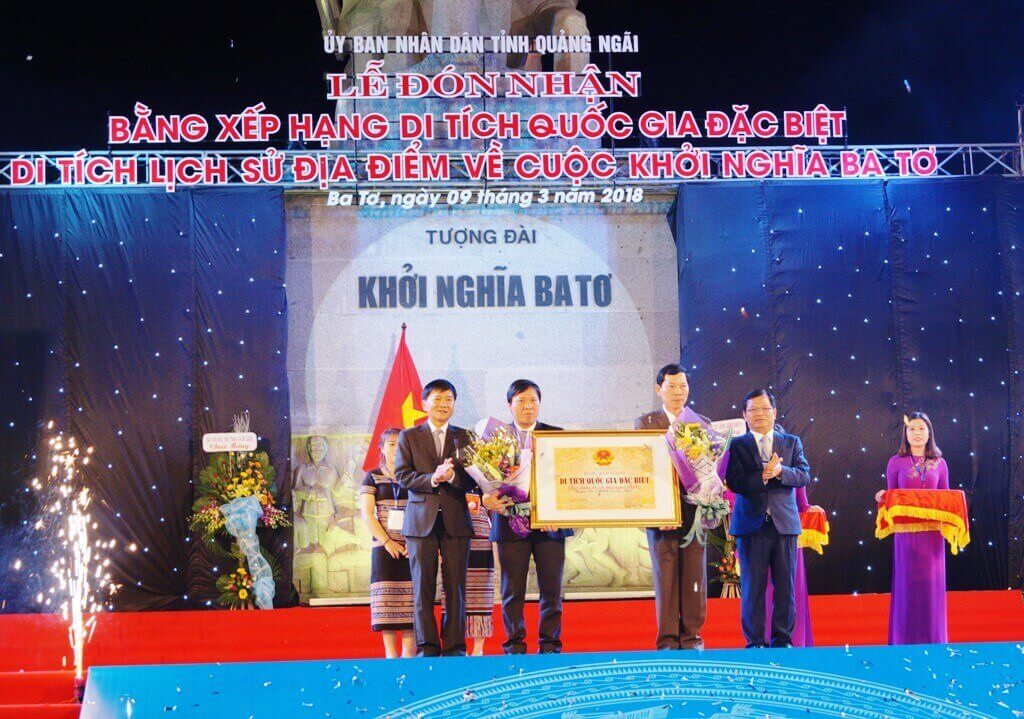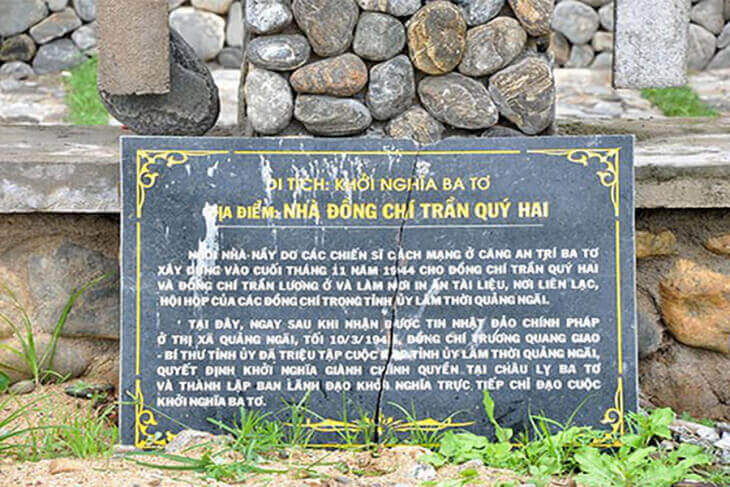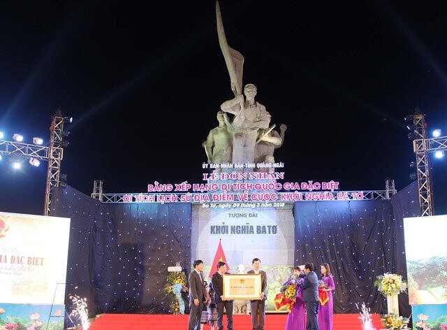 바또 봉기는 일본이 베트남에서 프랑스군을 무너뜨린 지 이틀 뒤인 1945년 3월 11일 278명의 게릴라들과 함께 일어났고, 바또 현과 꽝응아이 성에 새로운 정부가 수립되었습니다. 바또 봉기는 베트남 공산당이 직접 조직, 훈련, 지도하는 꽝응아이성 최초의 무장 조직인 바또 게릴라 팀과 관련이 있다. 바또게릴라팀은 봉기 이전 시기에 탄생한 혁명무력의 하나로서 1945년 8월 총봉기 당시 꽝응아이 혁명대중의 핵심세력으로 되여 꽝응아이 혁명무력 건설에 일익을 담당하였다. Thua Thien – 후에(Hue) 및 중남부 지역. 바토유격대의 많은 성원들은 훗날 프랑스와 미국에 대항한 두 차례의 저항전쟁에서 우리 군대의 유능한 장교, 우수한 장군들이 되었습니다. 1980년 바또 봉기와 바또 게릴라 집단 관련 유적군은 문화정보부로부터 국가 역사문화 유물로 인정받았다. 2010년 바토 게릴라팀은 국가로부터 반프랑스 시기 인민군 영웅 칭호를 받았습니다. 따라서 바토 봉기의 국가 특별 유물 유적지는 다음과 같이 11개 장소로 구성됩니다. 1. 바토역 뒤 리엥 강 구역(바토마을), 혁명군이 결핵에 걸린 척하고 배 밑에서 격리 생활을 요구하며 적의 눈을 가려 혁명 전단과 선전물을 인쇄했던 곳. 2. 1944년 12월 말 꽝응아이성 당 위원회가 설립된 누옥낭 벽돌 가마(바토 타운). 3. 임시 지방당 위원회가 임시 회의(1945년 3월 10일)를 열어 반란과 권력 장악을 결정한 쩐 꾸이 하이(Tran Quy Hai) 동지의 집(바토 타운). 4. 꽝응아이성 당 위원회가 1945년 3월 11일 정오에 긴급 회의를 열어 바또현 수도에서 권력을 장악하기 위한 봉기의 방향을 결정한 수오이 로아 망루(바동 면). 5. 바또(Ba To) 지역을 관할하는 프랑스 주둔군 사령관이 지휘하는 군대 수비대인 바토(Ba To) 기지는 1945년 3월 11일 밤 반군에 의해 점령되었습니다. 6. 검찰청(바토 타운)은 1945년 3월 11일 밤 반군이 검찰관 Bui Danh Ngu를 체포하고 모든 인장, 기록, 문서 및 무기를 압수한 곳입니다. 국민에게 권력을 돌려주세요. 7. 바토 게릴라팀이 창설된 바토 경기장(바토 타운), 1945년 3월 12일 아침 봉기 운영위원회가 대규모 집회를 조직하여 봉건 식민 정부를 폐지하고 혁명적 정권을 수립했다고 선언했습니다. 정부. 8. 카오 무온(Cao Muon)산 기슭에 있는 항엔(Hang En) 해변(바빈 코뮌)은 1945년 3월 14일 밤 바또 게릴라 팀이 "조국을 위한 희생!"을 맹세한 곳입니다. 9. Ben Buon(Ba Thanh 코뮌), 무화과 주스, 잎 주스에 항일 전쟁 지역을 건설하기 위해 Ba To 게릴라에게 공급하기 위해 강을 통해 저지대 사람들이 기증한 식량과 무기를 받는 곳입니다. 10. 누옥라(Nuoc La) 전쟁 지역 - 바또(Ba To) 게릴라 집단이 군대를 주둔시키고 기지를 건설하며 일본에 대항하여 군사적 저항을 펼쳤던 곳인 부트 레프(Ba Vinh) 동굴. 11. 카오무온 산 전쟁 지역(바빈 코뮌). 봉기 초기 바또 게릴라 팀이 기반을 두고 세력을 구축하고 킨-트엉 연대를 육성했던 장소 중 하나입니다. 2013년 8월, 총리는 반프랑스 기간 동안 바빈(Ba Vinh), 바장(Ba Giang), 바동(Ba Dong), 바추아(Ba Chua), 바탄(Ba Thanh), 바토(Ba To) 마을을 "꽝응아이 중앙 안전 구역"에 속하도록 인정하기로 결정했습니다. 2017년 12월 25일, 총리는 바토 봉기 장소를 '특별 국가 기념물'로 인정하기로 결정했습니다. 출처 : 국가 기념물 컬렉션