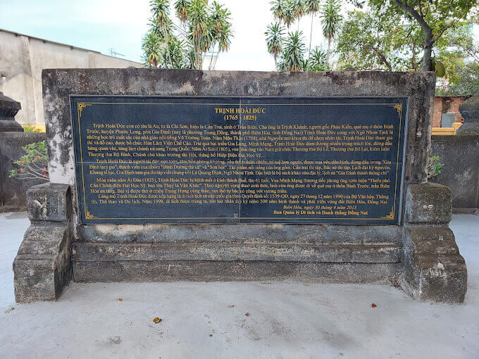 チン・ホアイ・ドック墓は、ドンナイ省ビエンホア市チュンズン区第3四半期にあります。 1990 年 12 月 27 日、文化情報スポーツ観光部により国家歴史遺物に指定されました。 グエン王朝時代、チン・ホアイ・ドゥクの墓はチャン・ビエン宮殿のビン・チュック村にありました。フランス植民地時代には、ビエンホア県チャウタイン地区のビン トルオックに変更されました。 1938 年、チン ホアイ ドックの霊廟は極東学派によって遺物として分類されました。地元の人々はよく「ミスター廟」と呼んでおり、複合ラテライトで造られた古墳が数多くあり、かつてはチン・ホアイ・ドック家の墓であったと信じる人も多い。墓はすべて象の形で建てられており、平面図は長方形です。漢字が刻まれた石碑は南西を向いており、壁は緑の苔で覆われています。チン家の墓エリア全体の中で、チン・ホアイ・ドクの墓はその建築規模のゆえに際立っており、おそらくこれが古代の家系の原則に従った墓建設者の意図であったのでしょう。 1975 年以前は、毎年清明節の期間中、他の地域からチン ホアイ ドゥックの子孫が厳粛な儀式を執り行って敬意を表しました。その後、チン家の子孫が高齢になったり放浪したりしたため、以前のように訪問儀式が行われなくなったため、儀式が行われた。 1998 年、ビエンホア - ドンナイの形成と発展 300 周年を記念して、チン ホアイ ドックの墓は修復され装飾され、堅固な城塞に囲まれたオリジナルの墓の建築が保存されました。墓の後ろには盛り上がった壁があり、波状の楕円形を形成しています。壁にはチン・ホアイ・ドックの徳をたたえる詩のような漢字の碑文が刻まれているが、時間の経過とともに色褪せて読めなくなり、両面には絶縁された2つの龍の頭が飾られている。現在、この壁には隠れた龍の模様が施されています。墓の入り口の前には、チン・ホアイ・ドゥックの伝記と経歴が刻まれた大きなスクリーンがあります。墓の前の城壁を繋ぐ角柱には中国語の対句が刻まれており、その内容は主に歴史とチン・ホアイ・ドクの研究の博学に関するものである。城塞の内部には建築の主要な要素があり、次の 2 つの部分で構成されます。 墓:Trinh Hoai Ducの1人とLeという姓の主な妻の1人。墓の構造は同じで、象の形をしており、馬蹄形の縁で囲まれており、各墓の前には漢字が刻まれた石碑があります。周囲にはテキストの線や陰と陽のシンボルが装飾されており、底部にはひざまずいた足の形がエンボス加工されています。チン・ホアイ・ドゥックの 2 つの墓にある石碑の内容には、チン・ホアイ・ドゥックとその妻に与えられた称号、地位、階級、称号が簡単に記載されています。 石碑:時期がその年の11月であることも明記されています ダウでは、子供たちのチン・ティエン・レ・ニエン、チン・ティエン・ニエン・バオ、チン・ティエン・バオが共同で石碑を設立しました。チン・ホアイ・ドゥク氏は偉大な才能と人格を持ち、ドンナイ族の誇りであるドンナイ文化の誇りの輪の基礎を築くのに貢献してきました。 出典: ドンナイ省電子情報ポータル