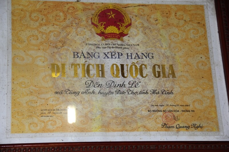Dinh Le 사원은 Linh Cam Dai Vuong 사원으로도 알려져 있으며 이전에는 Viet Yen 현 Viet Yen Ha 코뮌에 속해 있었지만 현재는 Ha Tinh Duc Tho 현 Tung Anh 코뮌에 속해 있으며 나중에 Le 왕조의 창립 신인 Linh Cam Dai를 숭배합니다. Vuong.DinhLe. Dinh Le는 Lam Son, Tho Xuan, Thanh Hoa 출신이며 Le Loi의 조카입니다. 1418년부터 1427년까지 Dinh Le는 Lam Son 반란군의 많은 중요한 전투에 참여하여 많은 승리를 거두었으며 침략하는 명나라 침략자들에 대한 최종 승리에 크게 기여했습니다. 전투에서 승리한 Dinh Le는 Le Loi로부터 사령관이라는 칭호를 받았습니다. 1425년 4월, 명나라 군대는 Ngan Pho 강을 따라 Lam Son 반란군의 Do Gia 기지를 공격했지만 반격을 받고 Tung Linh 산을 통해 도망쳐 La 강으로 들어가 Nghe An 성채로 돌아갔습니다. Dinh Le의 군대가 이곳을 가로채서 공격하여 1,000명 이상의 사람들을 죽였습니다. 1427년 3월, Dinh Le와 Nguyen Xi는 Tay Phu Liet의 Le Nguyen 장군을 지원하기 위해 500명의 티엣 군대를 데려와 명나라 군대를 Mi Dong으로 추방하라는 명령을 받았습니다. 코끼리를 탄 두 장군이 늪에 빠져 명군에게 포로가 되었습니다. Dinh Le는 복종을 거부하고 살해당했습니다. 1428년 왕위에 오른 후 레 타이 토(Le Thai To)는 사후에 딘 레(Dinh Le)에게 투 도(Tu Do)라는 칭호, 딘 트엉 후작(Dinh Thuong Marquis)이라는 칭호, 린 캄 다이 브엉(Linh Cam Dai Vuong)이라는 칭호를 수여했습니다. 1484년 Le Thanh Tong 가문은 그를 Ban Quoc Cong의 그랜드 마스터로 임명하고 나중에 그를 Hien Khanh Vuong으로 승진시켰습니다. 이 땅에 대한 그의 공헌을 기억하면서 사람들은 그가 이전에 주둔했던 장소인 Tung Linh 산, Tam Soa 기슭에 Dinh Le를 숭배하기 위해 사원을 세웠습니다. 원래 딘레(Dinh Le) 사원은 현재 위치에서 약 400m 떨어진 곳에 위치해 있었는데, 이곳이 프랑스군에 의해 군사 기지로 점령된 후 새로운 위치로 이전되었습니다. 이 사원은 현재 낮고 비교적 평평한 언덕에 위치해 있습니다. 북서쪽과 남서쪽은 주거 지역과 접해 있고 남동쪽은 전략 도로 28번과 접해 있습니다. 유물에는 여전히 벽과 입구 문 시스템으로 둘러싸인 상부 궁전, 전망대, 문 및 사원 마당이 있습니다. 벽은 벽돌과 회반죽으로 쌓았으며 가운데에는 레몬꽃 모양의 구멍이 있고 네 모서리에는 기둥이 세워져 있으며 그 위에는 연꽃봉오리가 놓여 있다. 딱몬(Tac Mon)은 입구를 막는 칸막이와 같으며, 외부 표면은 노란색 호랑이 부조를 만들고 머리와 꼬리를 높이 치켜세우고 웅장하게 서 있습니다. 문을 통과하면 1937년에 2층, 8개 지붕, 4면 문이 있는 이중 일치 스타일로 지어진 전망대로 가실 수 있습니다. 전망대 복원 날짜에는 "Bao Dai Dinh Suu(1937)"라고 적혀 있습니다. 상부 궁전은 3개의 구획, 2개의 박공, 4개의 기둥 스택 다우 스타일의 잭푸르트 나무 서까래 4개(루옹 하우스라고도 함)가 있는 4개의 기둥 집입니다. 상단에는 '성궁만세'라는 한자 4자가 새겨져 있다. 중앙 복도에는 양쪽에 꽃과 덩굴이 새겨진 무릎을 꿇은 나무 향로가 있고 앞쪽에는 달과 얼굴 옆에 용이 있습니다. 문은 "상부 그러나 하부" 스타일로 구성되어 있으며, 상단에 나무못으로 연결된 많은 문으로 구성되어 있습니다. 나머지 3면은 벽돌 벽으로 둘러싸여 있습니다. 중앙 공간은 신성한 왕좌, Linh Cam Dai Vuong이라는 제목이 새겨진 왕실 서판, 금박을 입힌 옻칠한 나무에 놓인 나무 검, 향로와 금박을 입힌 나무 제물 시스템으로 수호신 Dinh Le를 숭배합니다. 2006년 1월 17일, 딘레 사원은 국가 기념물로 지정되었습니다. 출처 : Duc Tho 지역 전자 정보 포털