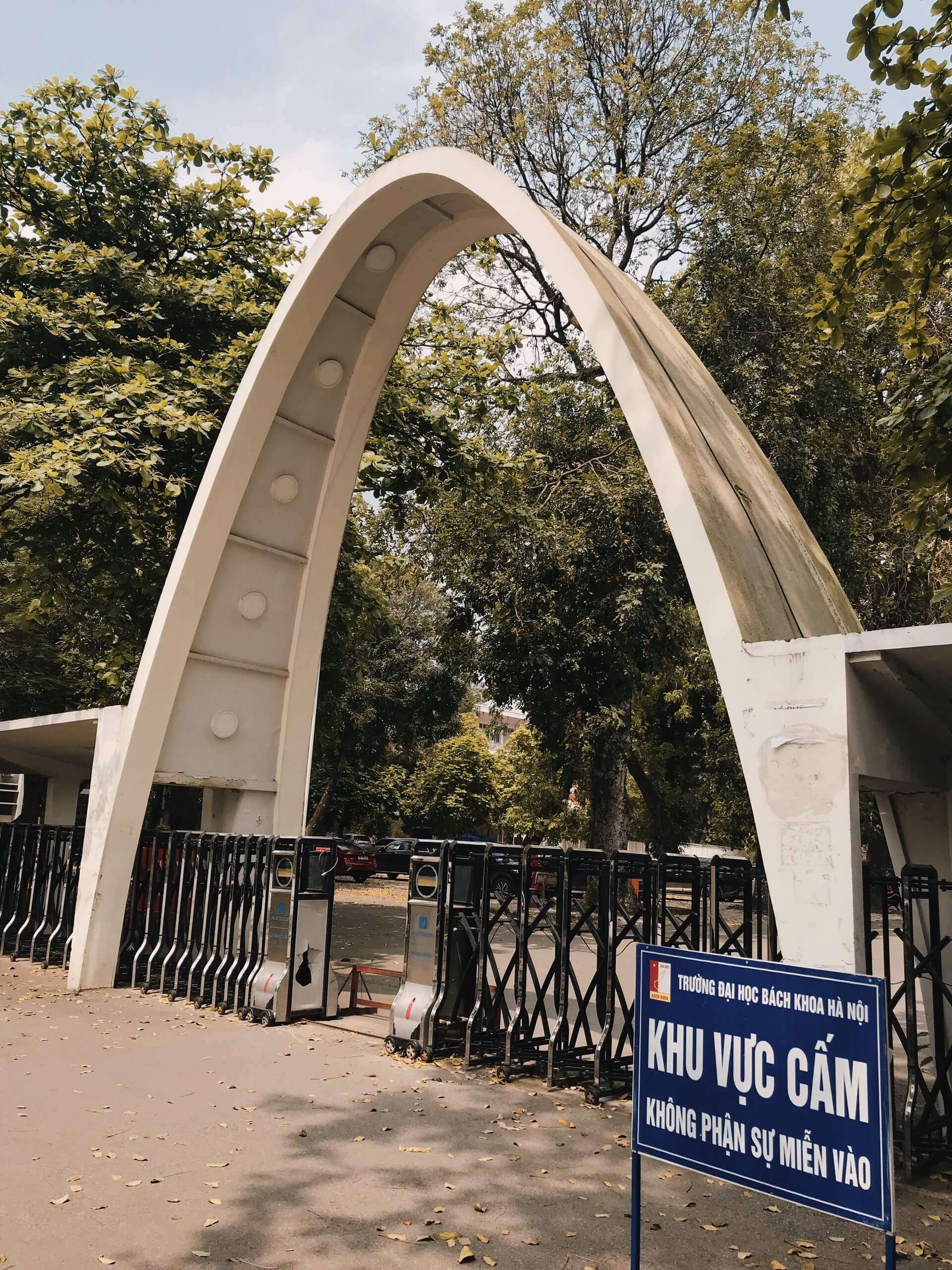 Và cuối cùng, chiếc cổng huyền thoại Parabol của trường, được xem là chiếc cổng đẹp nhất của trường. Được thiết kế độc nhất vô nhị không có trường nào làm giống, và bạn bước ra cổng là đường Giải Phóng. Mọi người hay trêu là bước ra được trường chính là giải phóng đó!