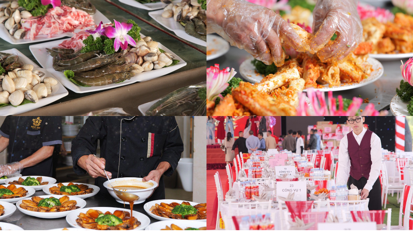 Về thực đơn, nhà hàng tập trung mạnh vào các món ăn chuyên phục vụ tiệc và ẩm thực truyền thống Việt Nam. Các món ăn được chế biến phù hợp với khẩu vị của đa số thực khách, từ các món khai vị, món chính đến tráng miệng. Tớ được biết thực đơn ở đây rất đa dạng, đặc biệt là các set menu dành cho tiệc cưới hoặc hội nghị. Nguyên liệu được lựa chọn kỹ càng, đảm bảo sự tươi ngon và chất lượng.