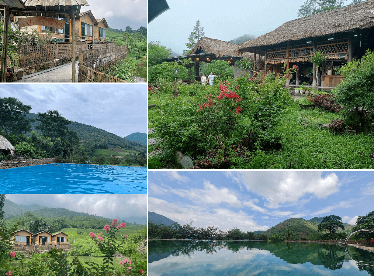 Khu lưu trú gồm nhà sàn cộng đồng được trang bị đầy đủ các đồ dùng thiết yếu,thoáng mát,sạch sẽ và có không gian mở để hòa mình vào thiên nhiên. Ngoài ra,cũng có thêm 8 căn bungalow với lối thiết kế cách điệu,hiện đại đem lại cho du khách những phút giây nghỉ dưỡng thoải mái nhất. Đặc biệt,homestay còn có bể bơi vô cực với nguồn nước suối tự nhiên,không hóa chất. Du khách có thể thỏa sức bôi lội,thư giãn vì bể bơi có diện tích trên 400m2.