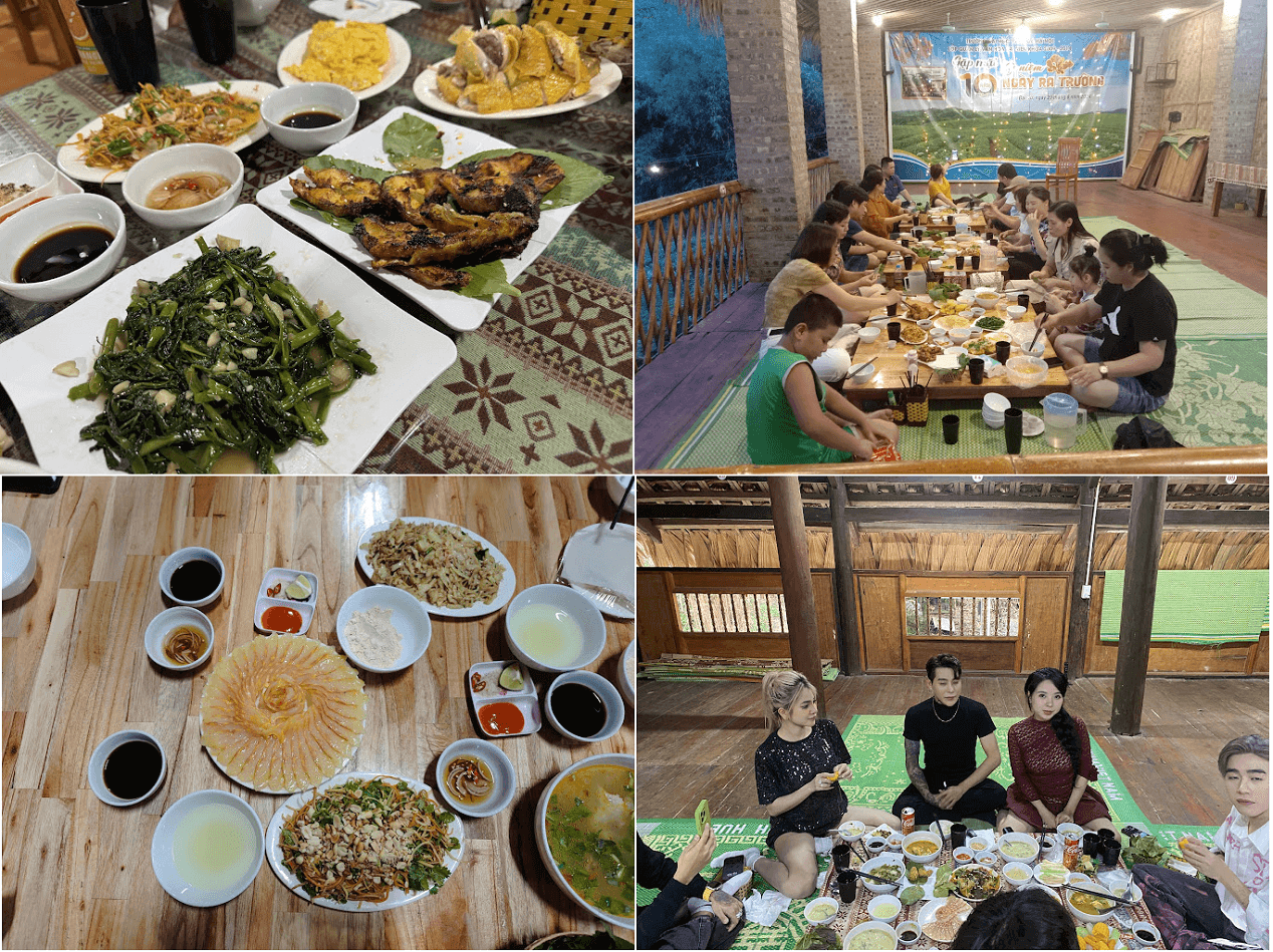 Ở đây còn có nhà hàng ẩm thực chuyên phục vụ các món ăn chế biến từ cá tầm và một số món ăn mang bản sắc hương vị của địa phương. Những món ăn dân giã,mộc mạc nhưng không kém phần hấp dẫn như: Gà đồi,cá suối,các loại rau rừng,măng rừng... Nhà hàng với sức chứa lên đến 200 người,được bố trí với nhiều không gian khác nhau để bạn lựa chọn. Những món ăn thơm ngon,chuẩn vị cùng cách bày trí vô cùng bắt mắt được chính những đôi bàn tay khéo léo của người dân địa phương chế biến.