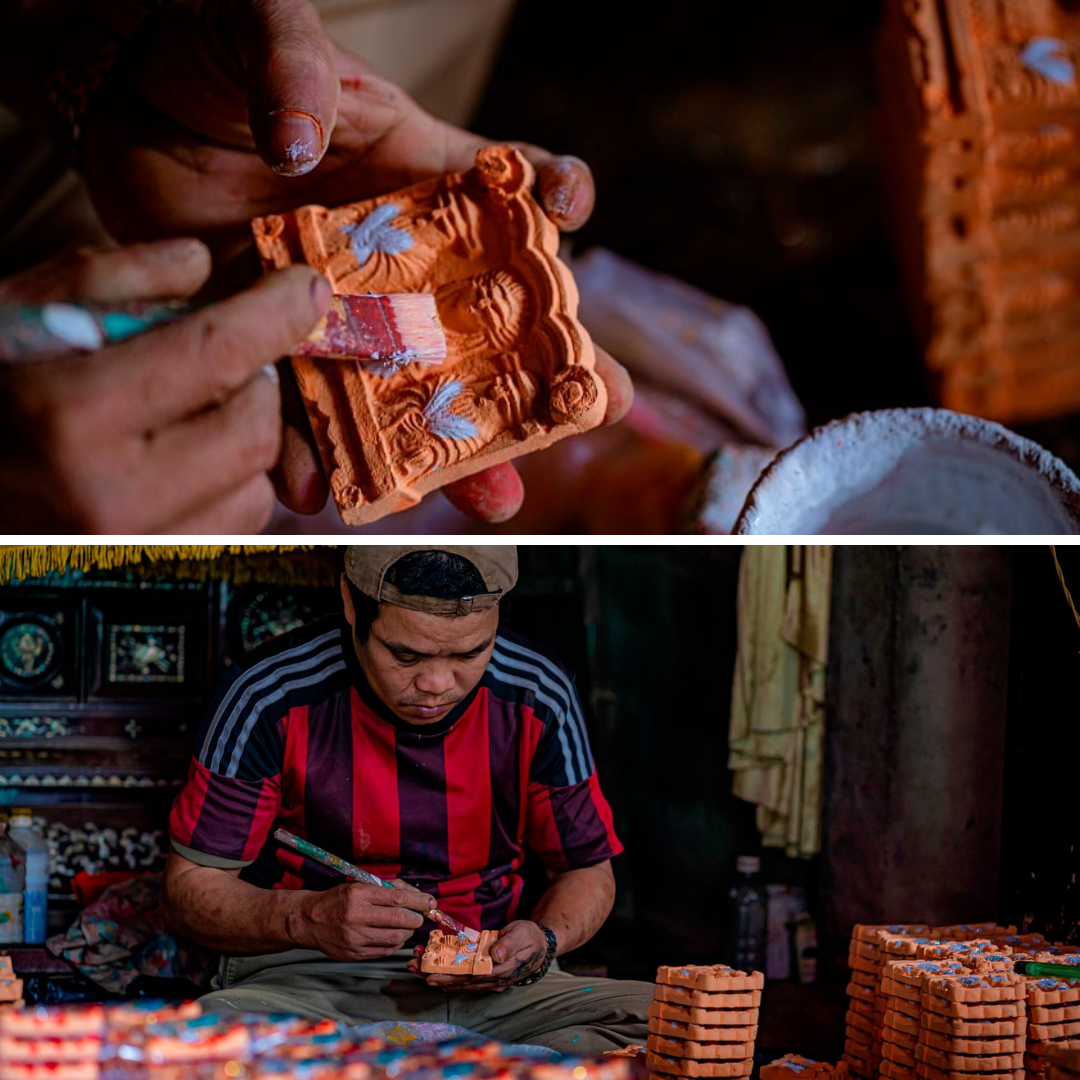 Sau khi đất đã "chín" và đạt độ dẻo, người thợ sẽ tiến hành nhào nặn thật kỹ rồi đưa vào khuôn đúc. Khuôn đúc thường là khuôn thạch cao hoặc khuôn gỗ truyền thống đã được gìn giữ qua nhiều năm. Tượng được lấy ra khỏi khuôn gọi là "tượng mộc", còn khá ẩm và cần được phơi khô tự nhiên dưới ánh nắng. Cuối cùng, tượng sẽ được đưa vào lò nung với kỹ thuật canh lửa chính xác để đảm bảo độ cứng cáp và màu sắc.