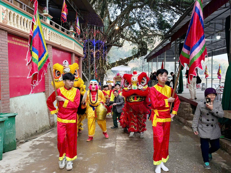 Bên bãi hoa rực rỡ sắc xuân bên dòng sông Cầu thơ mộng, du khách thỏa sức chiêm ngưỡng cảnh đẹp đầu năm và trải nghiệm không gian văn hóa sống động sau khi dâng hương tại đền. Các trò chơi dân gian đậm đà bản sắc văn hóa như kéo co, đẩy gậy, ném còn, khâu còn diễn ra sôi nổi, mang lại không khí vui tươi, gắn kết cộng đồng.