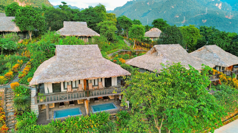 Nằm ẩn mình giữa những cánh rừng già và thác nước tự nhiên tại khu vực lân cận trung tâm xã, Avana Retreat mang đến một không gian nghỉ dưỡng siêu sang trọng với mức giá từ 6.500.000 đến 18.000.000 VNĐ mỗi đêm. Khu resort sở hữu những căn villa biệt lập nằm thoai thoải bên sườn núi, nơi bạn có thể nghe tiếng thác đổ rì rào và hít hà hương vị của đất trời Tây Bắc. Điểm nhấn tại đây chính là bể bơi vô cực đa tầng với tầm nhìn xuống những thửa ruộng bậc thang kỳ vĩ, là điểm dừng chân lý tưởng để du khách tận hưởng sự xa hoa và riêng tư tuyệt đối.
