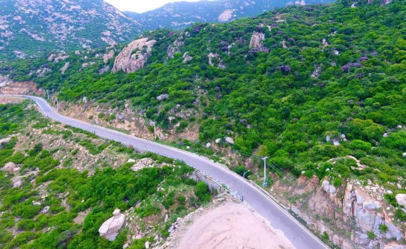 Đây là một trong những cung đường ven biển đẹp nhất tỉnh Khánh Hòa, nối liền khu vực đồi cát với các vùng lân cận của xã Phước Dinh. Con đường chạy dọc theo sườn núi với một bên là vách đá dựng đứng, một bên là vực biển sâu thẳm mang lại tầm nhìn tuyệt mỹ cho những ai yêu thích lái xe khám phá. Dọc đường đi, du khách sẽ bắt gặp những đàn cừu, đàn dê được người dân địa phương chăn thả thong dong trên các sườn đồi khô cằn. Những khúc cua uốn lượn và không gian lộng gió tại đây luôn mang đến cảm giác tự do và khao khát chinh phục những vùng đất mới cho mọi hành khách.