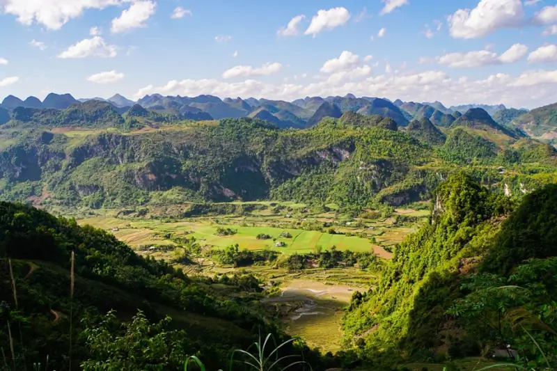 Ngày 1: Phường Thục Phán – Xã Quốc Toản – Trekking nhẹ nhàng khám phá hệ thống hồ ngầm – Nhận lều Glamping hiện đại – Thưởng thức tiệc nướng BBQ và đốt lửa trại giữa thung lũng.