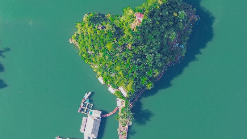 Đảo Trái Tim là một hòn đảo nhỏ nổi lên giữa mặt hồ thủy điện tại xã Quỳnh Nhai, được quy hoạch thành khu du lịch sinh thái với cảnh quan vô cùng lãng mạn. Đúng như tên gọi, hòn đảo có hình dáng độc đáo và được bao phủ bởi thảm thực vật xanh mướt, hoa nở bốn mùa xen lẫn những lối đi lát gỗ tinh tế. Đây là nơi tuyệt vời để du khách tận hưởng cảm giác tách biệt hoàn toàn với thế giới bên ngoài, thong dong tản bộ dưới tán cây và lưu lại những khung hình đẹp như tranh vẽ giữa lòng "Vịnh Hạ Long trên núi".