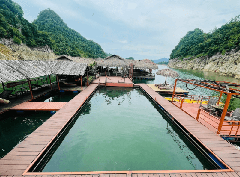 Tọa lạc giữa vùng lòng hồ mênh mông thuộc địa phận xã Quỳnh Nhai, đây là tổ hợp giải trí và vận động dưới nước quy mô nhất khu vực với hệ thống bến thuyền du lịch hiện đại cùng khu vực nhà nổi tích hợp đa dạng trò chơi. Du khách có thể thử sức với các hoạt động thể thao tinh tế, dạo bước trên những đảo nhỏ xanh mướt hoặc tận hưởng làn gió mát lành từ mặt hồ rộng lớn thổi vào. Đây là điểm đến lý tưởng để bạn tái tạo năng lượng và tận hưởng những tiện ích thư giãn hiện đại ngay sau hành trình khám phá kỳ quan đập thủy điện hùng vĩ. Chi phí cho các dịch vụ vận động và thư giãn tại đây thường dao động từ 150.000 – 850.000 VNĐ tùy vào loại hình trải nghiệm bạn lựa chọn.