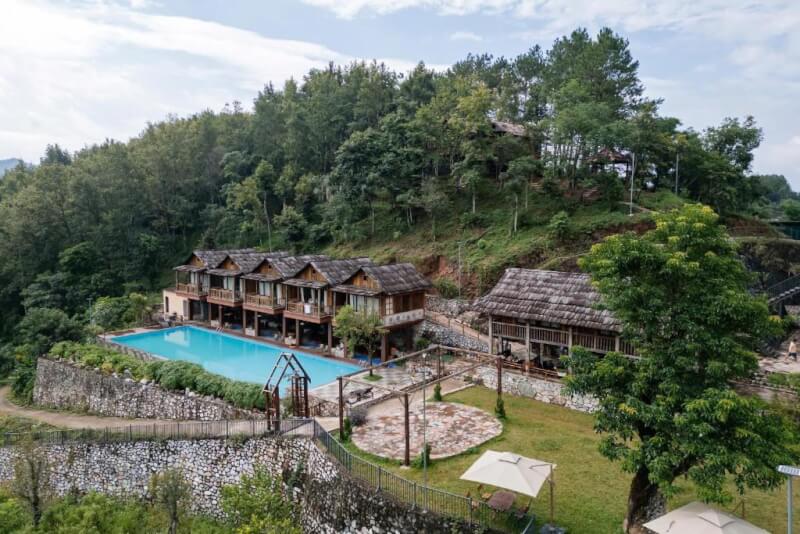 Tọa lạc giữa thung lũng thanh bình của phường Nùng Trí Cao, Khuổi Hân Ecolodge gây ấn tượng mạnh mẽ với lối kiến trúc độc đáo được xây dựng hoàn toàn từ đá tự nhiên và gỗ. Khu nghỉ dưỡng cung cấp các bungalow đạt tiêu chuẩn 4 sao với nội thất tinh tế, nơi du khách có thể đắm mình trong làn nước mát lạnh của hồ bơi vô cực có tầm nhìn 10/10 hướng ra đại ngàn trùng điệp. Không gian buổi tối lãng mạn tại quầy bar cùng các bữa tiệc nướng BBQ ngoài trời đầy ấm cúng biến nơi đây thành một "thiên đường" chữa lành lý tưởng, giúp bạn tìm lại sự cân bằng sau những giờ phút chinh phục các cung đường vùng cao. Giá lưu trú tham khảo: 1.100.000 – 2.300.000 VNĐ/đêm.