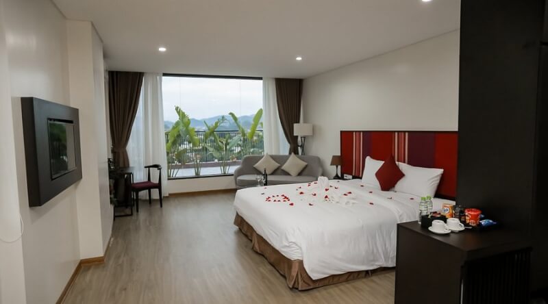 Nằm ngay tại khu vực Dốc Kéo Dà thuộc địa phận xã Trường Hà, Pác Bó Boutique Hotel mang đến không gian nghỉ dưỡng đẳng cấp kết hợp hài hòa giữa kiến trúc hiện đại và vẻ đẹp hoang sơ của núi rừng biên viễn. Khách sạn sở hữu hệ thống phòng nghỉ đa dạng với tầm nhìn hướng thẳng ra những dãy núi đá vôi hùng vĩ, mang lại bầu không khí tinh khôi và yên tĩnh tuyệt đối cho mỗi du khách ngay khi vừa thức dậy. Với các tiện nghi tiêu chuẩn cùng khu vực bể bơi ngoài trời xanh mát, đây là lựa chọn hàng đầu cho các gia đình muốn dành trọn thời gian để dạo bộ bên dòng suối Lê Nin và khám phá vẻ đẹp kỳ vĩ của thung lũng Pác Bó. Giá lưu trú tham khảo: 600.000 – 1.500.000 VNĐ/đêm.