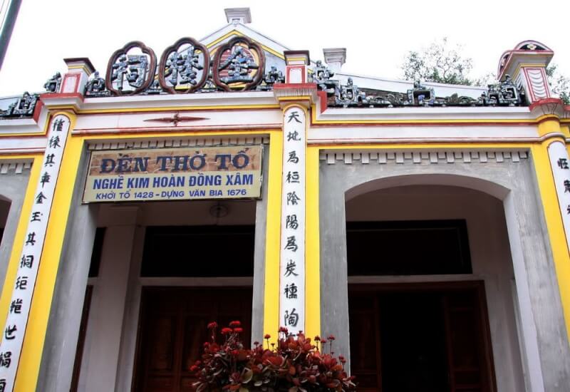 Đền Đồng Xâm là công trình kiến trúc quan trọng nhất, nơi thờ vị tổ nghề chạm bạc Nguyễn Kim Lâu với bề dày lịch sử hàng trăm năm. Ngôi đền gây ấn tượng mạnh mẽ với tòa Thủy tọa nằm soi bóng bên dòng sông thơ mộng và tòa Tiền tế được chạm khắc gỗ, đá vô cùng tinh xảo. Đây là không gian tâm linh trang nghiêm, nơi du khách có thể chiêm ngưỡng những bức đại tự, cửa võng thếp vàng lộng lẫy – minh chứng cho đỉnh cao kỹ nghệ của những người thợ chạm bạc tài hoa nhất vùng Sơn Nam xưa.