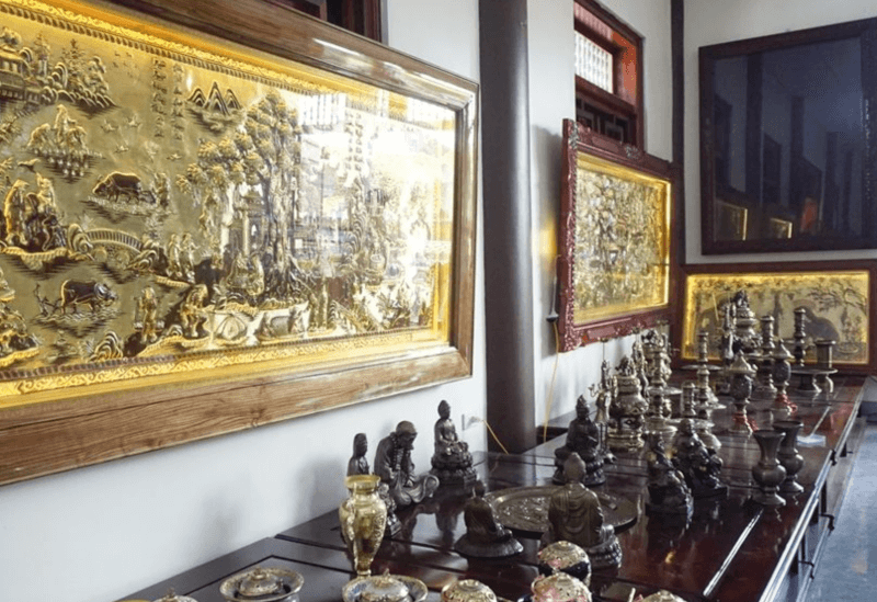 Khu trưng bày là nơi hội tụ hàng ngàn sản phẩm bạc tinh xảo, từ những bộ đồ thờ cúng uy nghi đến các món đồ trang sức hiện đại được chế tác thủ công tỉ mỉ. Du khách đến đây không chỉ để tham quan mà còn có cơ hội tìm hiểu về ý nghĩa phong thủy, văn hóa ẩn chứa sau mỗi đường nét chạm khắc trên các tác phẩm kim hoàn. Đây là không gian lý tưởng để bạn chọn mua những món quà lưu niệm độc đáo, mang đậm dấu ấn cá nhân và tinh hoa nghệ thuật của làng nghề chạm bạc danh tiếng nhất tỉnh Hưng Yên.