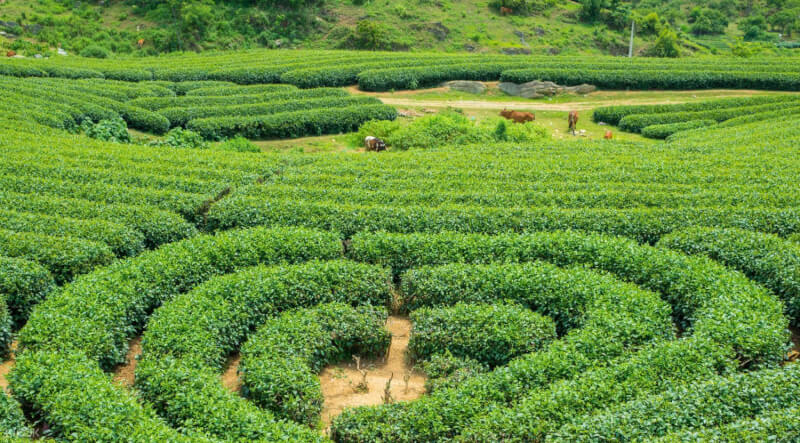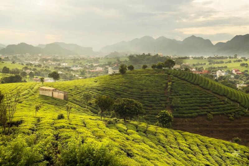 Phương tiện di chuyển: Xe du lịch nội tỉnh, đi bộ tản bộ giữa các nương chè uốn lượn.