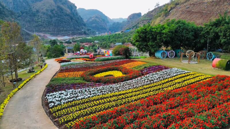 Mộc Châu Happy Land là khu du lịch và nghỉ dưỡng quy mô lớn với những thảm hoa rực rỡ khoe sắc quanh năm tại địa phận phường Mộc Châu. Không gian tại đây được thiết kế tỉ mỉ với nhiều tiểu cảnh sáng tạo, từ những ngôi nhà hình ống độc đáo đến các khu vực trò chơi cảm giác mạnh hấp dẫn. Du khách có thể dạo bước trong vườn hoa đa sắc, tham gia các hoạt động giao lưu văn hóa đặc sắc của người dân địa phương hoặc đơn giản là tìm một góc nhỏ để thư giãn bên những suối nước nhân tạo chảy róc rách.