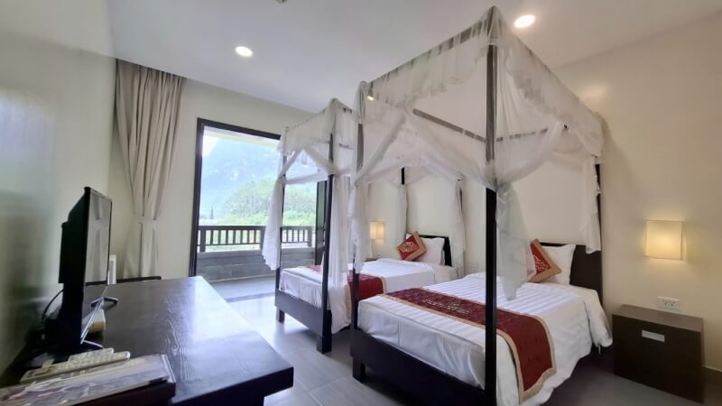 Nép mình bên bờ sông Quây Sơn xanh ngắt tại xã Đàm Thủy, Lan’s Homestay thu hút những tâm hồn yêu thiên nhiên bởi khu vườn rực rỡ sắc hoa và không gian mở thoáng đãng. Với mức giá phòng từ 350.000 đến 750.000 VNĐ mỗi đêm, đây là điểm dừng chân lý tưởng để bạn chèo SUP trên sông hoặc dạo bộ qua những cánh đồng lúa chín vàng dẫn lối vào thác. Cảm giác yên bình khi nhâm nhi tách trà sớm giữa sương mờ núi rừng sẽ giúp bạn tìm lại sự cân bằng hoàn hảo sau những chuyến đi dài.