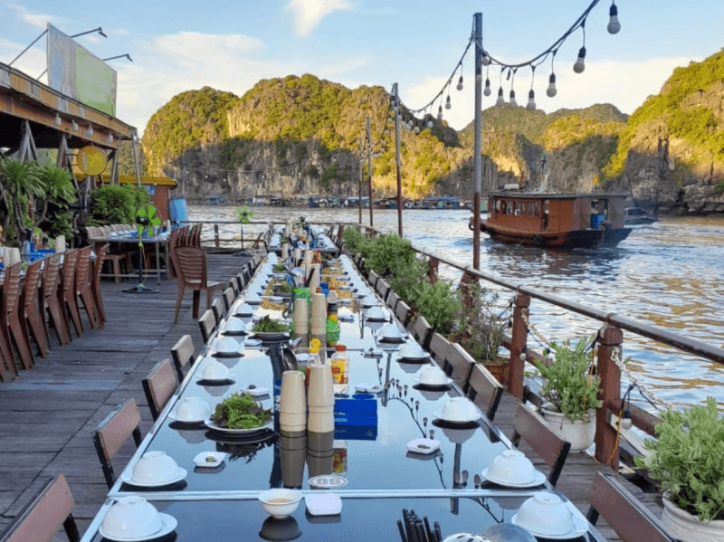 Nhà hàng nổi Quang Anh tọa lạc trên mặt vịnh thuộc khu vực Bến Bèo, đặc khu Cát Hải, là điểm đến ẩm thực bè nổi có quy mô lớn và lâu đời bậc nhất khu vực. Nhà hàng duy trì mô hình "nuôi tại bè, chế biến tại chỗ", cho phép thực khách trực tiếp lựa chọn các loại hải sản cao cấp như cá song, cá giò, hay tôm hùm từ những ô lồng nuôi thả ngay dưới sàn gỗ. Với không gian mở bốn bề lộng gió, đây là nơi lý tưởng để thưởng thức bữa trưa hoặc tối giữa khung cảnh thiên nhiên hùng vĩ của vịnh Lan Hạ với mức giá dao động từ 450.000 – 1.200.000 VNĐ/người.