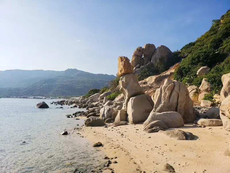 Lịch trình: Khởi hành từ xã Vĩnh Hải → Tham quan Hang Rái (ngắm bãi san hô cổ) → Trekking nhẹ dọc bờ biển đến Công viên Đá (khám phá các khối đá hình thù kỳ lạ) → Chụp ảnh check-in đỉnh núi đá ngắm toàn cảnh vịnh → Trở về.