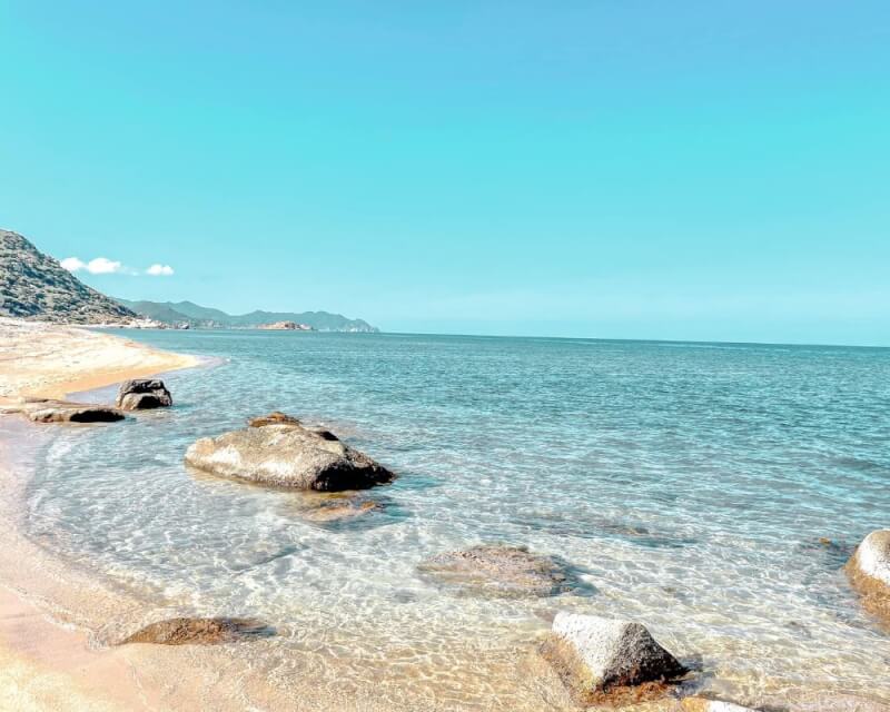 Nằm trọn trong xã Vĩnh Hải, Vịnh Vĩnh Hy hiện ra như một bức tranh thủy mặc với làn nước xanh ngắt được bao bọc bởi những dãy núi đá cao vút từ ba phía. Du khách thường chọn đi tàu đáy kính để ngắm nhìn vương quốc san hô đầy màu sắc ẩn mình dưới lòng biển hoặc ghé vào các bè nổi của ngư dân để thưởng thức hải sản tươi sống. Không gian vịnh êm đềm, kín gió mang lại cảm giác bình yên, tách biệt hoàn toàn với nhịp sống hối hả của những thành phố du lịch sầm uất.