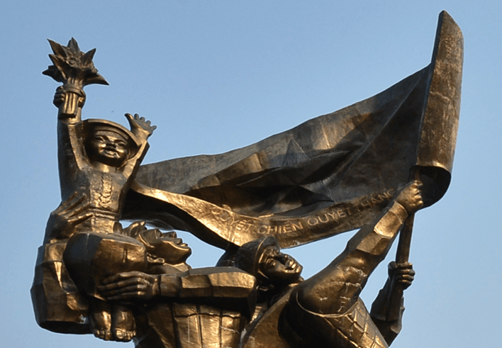 Cận cảnh nhóm nhân vật trên Tượng đài Chiến thắng Điện Biên Phủ.