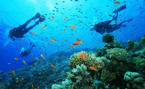 khách du lịch thỏa mãn đam mê khám phá đại dương bí ẩn. Tại đây,họ có thể ngắm san hô ở vùng nước nông bằng kính và ống thở đơn giản (snorkeling),thám hiểm đại dương bằng thiết bị lặn chuyên nghiệp (diving) hoặc thú vị hơn – kết hợp lặn ngắm san hô với câu cá,câu mực đêm và khám phá đảo hoang.