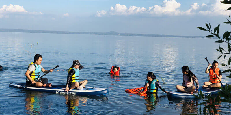 Chèo SUP (Stand Up Paddle) là một hoạt động thể thao dưới nước đang rất được ưa chuộng và là một trải nghiệm không thể bỏ lỡ khi đến Đảo Ó. Với mặt hồ rộng lớn và yên tĩnh,bạn có thể thuê SUP và tự mình trải nghiệm cảm giác lướt trên mặt hồ,ngắm nhìn khung cảnh thiên nhiên hùng vĩ xung quanh. Hoạt động này không chỉ giúp bạn rèn luyện sức khỏe mà còn mang lại những giây phút thú vị khi bạn tự mình chinh phục các con sóng nhỏ. Ngoài ra,chèo SUP vào buổi hoàng hôn cũng là một trải nghiệm vô cùng tuyệt vời khi bạn có thể chiêm ngưỡng cảnh mặt trời lặn,nhuộm vàng cả mặt hồ.