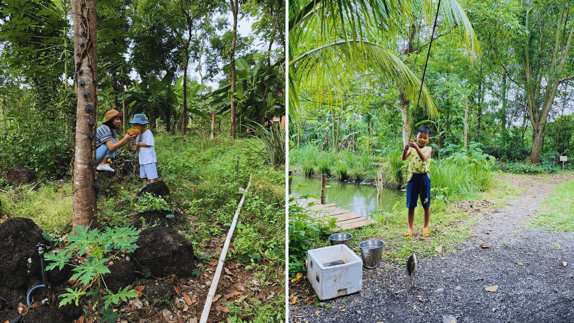 Không chỉ mang đến không gian xanh mát lành của vùng quê,Dốc Mơ Farm còn tạo ra các sân chơi giáo dục bổ ích cho trẻ em. Vào những dịp cuối tuần,cả gia đình có thể tham gia các hoạt động thú vị như bơi lội,tát mương bắt cá,đạp xe quanh nông trại hoặc học vẽ,tập yoga. Nông trại được thiết kế để phù hợp cho cả người lớn và trẻ nhỏ,dù bạn đi một mình hay cùng gia đình đều sẽ có trải nghiệm đáng nhớ.