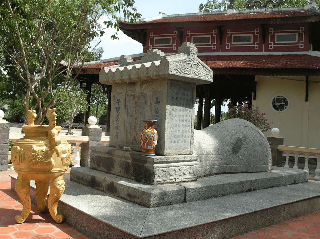Về ngôi mộ,lúc đầu được đắp bằng đất,đến năm 1927,con cháu ông và người dân địa phương xây dựng lại bằng đá xanh gồm hai phần: núm mộ và bia mộ. Theo các vị bô lão địa phương,mộ được xây theo kiểu “voi phục” vì trông giống con voi đang nằm áp bụng xuống đất. Nhân dịp xây dựng đền thờ,mộ ông cũng được nâng lên,trùng tu những vẫn giữ nguyên trạng như lúc ban đầu.