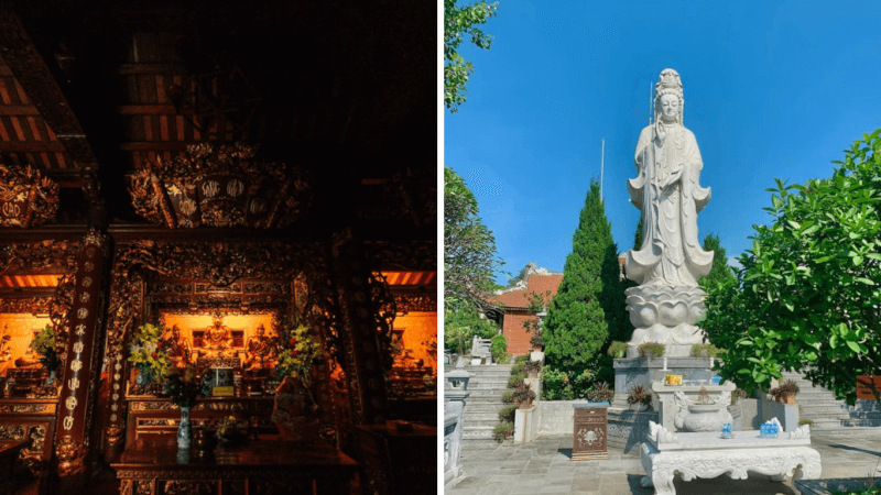 Khi đặt chân tới đây, bạn sẽ bị ấn tượng bởi khuôn viên rộng lớn được bao bọc bởi những hàng cây cổ thụ xanh mát. Không gian nơi này luôn gợi lên sự thoáng đãng, giúp tâm hồn mỗi người trở nên nhẹ nhàng và thanh tịnh hơn giữa bộn bề cuộc sống. Những hồ sen thơm ngát xung quanh càng tô điểm thêm vẻ đẹp yên bình cho cảnh sắc chùa chiền, khiến bất cứ du khách nào cũng cảm thấy thư thái khi ghé thăm.
