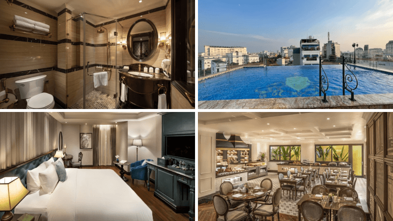 Một trong những điểm nhấn ấn tượng nhất của khách sạn chính là khu vực bể bơi ngoài trời nằm ngay trên tầng thượng. Tại đây, bạn vừa được đắm mình trong làn nước mát lạnh, vừa có cơ hội ngắm nhìn toàn cảnh thành phố từ một góc nhìn hoàn toàn mới lạ. Đây cũng là nơi lý tưởng để mình ngồi lại vào những buổi chiều hoàng hôn và tận hưởng không khí trong lành của Hà Nội.