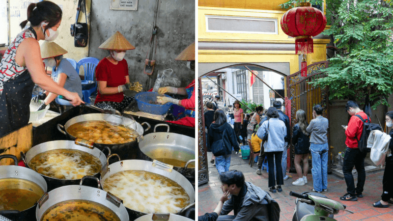 Mùi thơm nồng nàn của bột nếp chiên chín lan tỏa khắp một góc ngõ nhỏ khiến bất cứ ai đi qua cũng khó lòng cưỡng lại. Mỗi chiếc bánh đều chứa đựng tâm huyết và sự tỉ mỉ của người làm, mang đến cảm giác ấm lòng giữa lòng thủ đô. Mình tin chắc rằng hương vị truyền thống này sẽ để lại ấn tượng sâu đậm trong lòng những ai lần đầu trải nghiệm ẩm thực ngõ nhỏ Hà Nội.