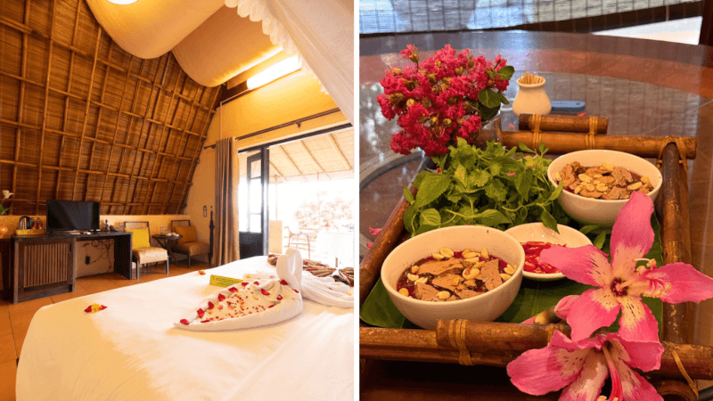 Khu resort có tổng cộng 85 phòng nghỉ, tất cả đều sở hữu tầm nhìn hướng ra hồ Suối Bơn thơ mộng và những khu vườn xanh mướt. Hệ thống phòng nghỉ được chia thành hai khu vực chính mang phong cách đối lập để khách hàng lựa chọn: Xóm Nhà Cổ và Xóm Lạc Việt. Kiến trúc nhà sàn và các phòng biệt thự riêng tư cũng là lựa chọn tuyệt vời cho các nhóm đông người.