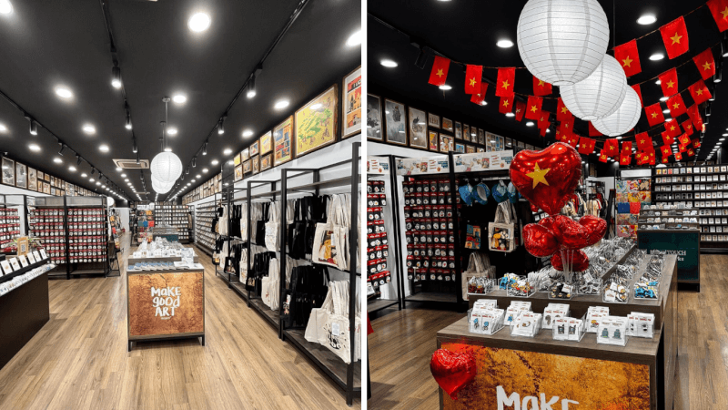 Các tác phẩm nghệ thuật ứng dụng tại cửa hàng thường lấy chất liệu từ đời sống hằng ngày hoặc những giá trị văn hóa truyền thống lâu đời. Những hình ảnh quen thuộc như phố xá, sinh hoạt đời thường hay các linh vật cổ xưa được tái hiện lại dưới góc nhìn đầy mẻ. Việc sở hữu một sản phẩm ở đây cũng đồng nghĩa với việc bạn đang trực tiếp ủng hộ cộng đồng sáng tạo trẻ tại Việt Nam.