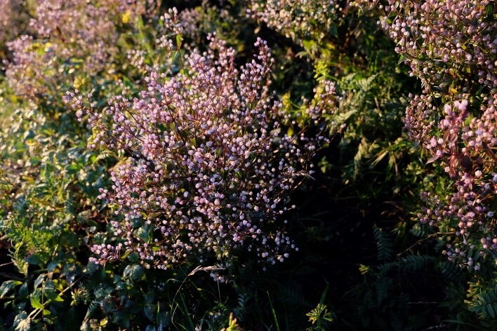 Ngọn núi vốn ngày thường xanh màu cây cỏ,bỗng nhiên được nhuộm tím bởi sắc hoa Chi Pâu như điểm nhấn mềm mại trong khung hình thiên nhiên hùng vĩ. Đang thả bước theo những con đường mòn uốn lượn quanh co,bạn sẽ đi từ bất ngờ tới si mê trước những triền hoa Chi Pâu dần hiện ra,chạy hút tầm mắt giữa không gian mênh mông của núi rừng,lung linh khoe sắc giữa đất trời xanh thẳm. Ngay sát bên cạnh là những dải mây trắng bồng bềnh.