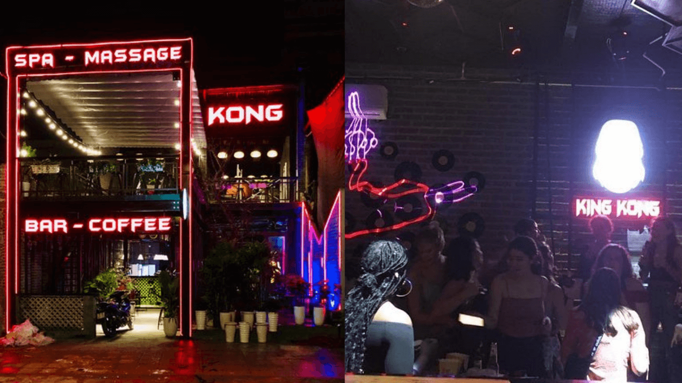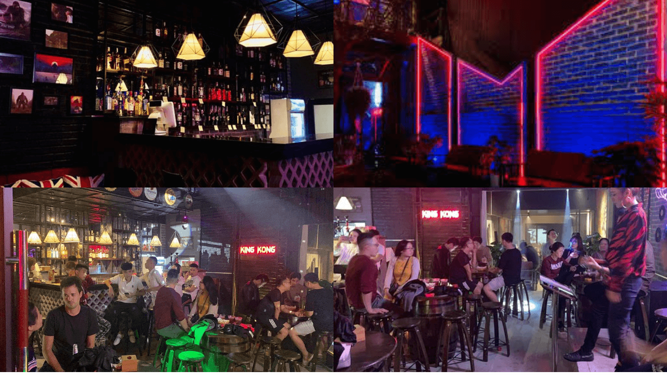 Khoảnh khắc hoàng hôn nhuộm tím vách núi đá vôi càng tôn lên nét lãng mạn cho không gian ngoài trời. Ánh đèn vàng lung linh từ những chiếc lồng đèn treo khắp quán tạo cảm giác ấm cúng ngay cả khi trời tối. Không khí nhẹ nhàng,xen lẫn tiếng nhạc du dương,phù hợp để trò chuyện bạn bè hoặc thư giãn một mình. Với phong cách phục vụ chu đáo,King Kong Bar đã ghi điểm ngay trong lần ghé thăm đầu tiên.
