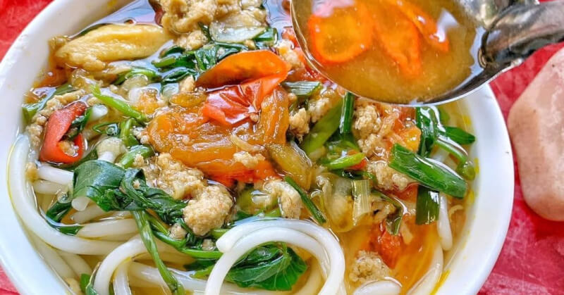 Để màu sắc thêm phần bắt mắt, các chủ quán thường phi thơm hành tím với mỡ rồi xào cùng gạch cua và cà chua chín mọng. Màu đỏ tự nhiên của cà chua hòa quyện với vị béo của cua đồng tạo nên một loại nước dùng vừa có vị ngọt lịm từ thịt, vừa có vị chua thanh nhẹ nhàng. Mỗi muỗng nước dùng đều chứa đựng tâm huyết và bí quyết riêng của người nấu, khiến thực khách càng ăn càng thấy thấm thía hương vị quê nhà.