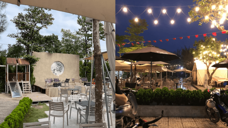Quán sở hữu diện tích khá rộng rãi và được phân chia thành nhiều khu vực ngồi khác nhau để khách hàng luôn cảm thấy thoải mái khi ghé thăm. Các cậu có thể chọn ngồi ở khu sân vườn để tận hưởng làn gió mát rượi và ngắm nhìn những hàng cây xanh mướt bao quanh. Nếu thích sự yên tĩnh để đọc sách hoặc làm việc, khu vực phía trong nhà với những bộ bàn ghế gỗ tối giản dưới ánh đèn vàng ấm cúng chắc chắn sẽ khiến các cậu hài lòng.
