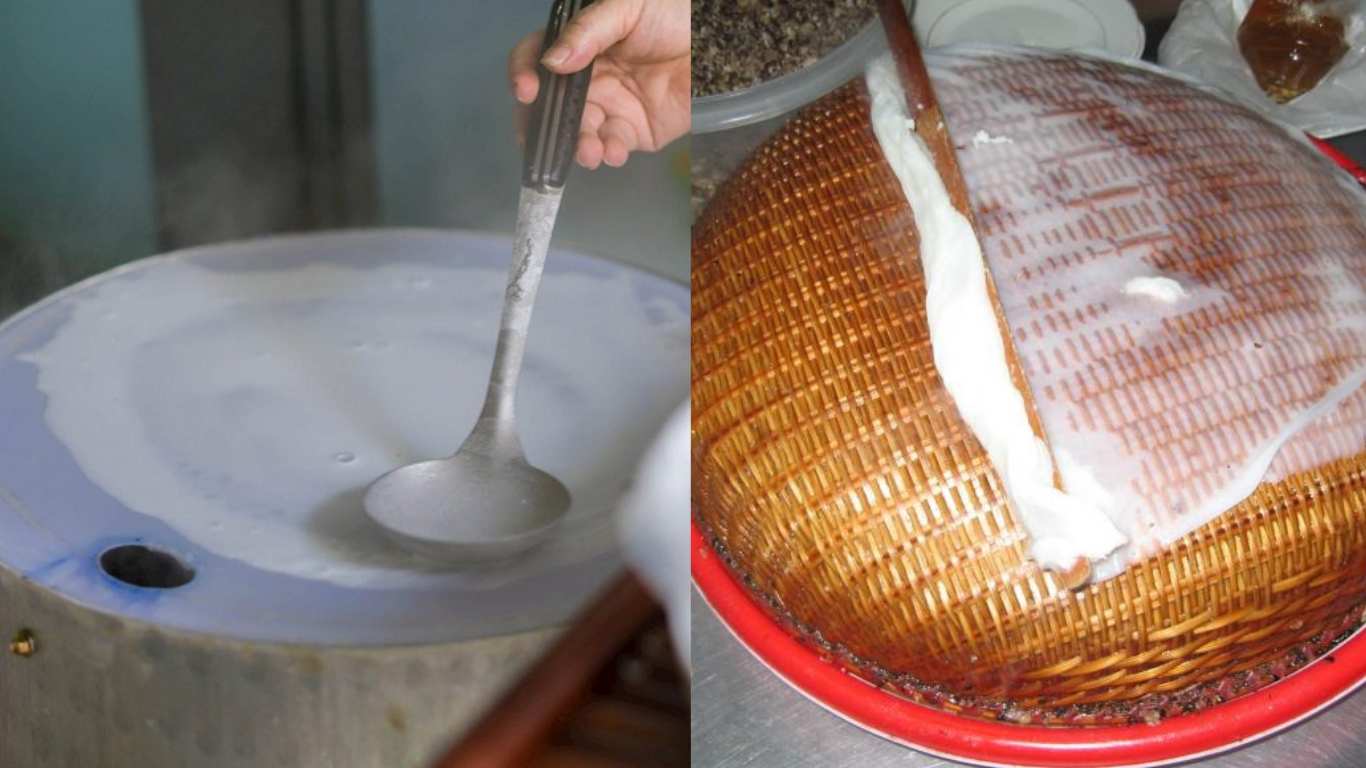 Bánh chỉ được tráng khi có khách gọi,đảm bảo giữ trọn vẹn độ nóng hổi và mềm mượt. Từng lớp bánh mỏng tang như lụa được người thợ khéo léo lấy ra khỏi khuôn vải,xếp chồng lên nhau mà không bị dính hay rách. Ngay sau đó,một lớp hành phi vàng ươm,giòn rụm sẽ được rắc lên trên. Lớp hành này thường được các quán tự phi thơm lừng,trở thành điểm nhấn hoàn hảo cho hương vị thanh tao,ngọt nhẹ của bột gạo.
