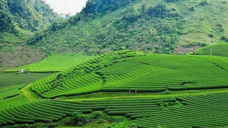Khung cảnh hai bên đường rợp đồi chè xếp lớp tầng tầng không chỉ tô điểm cho con đường mà còn làm say đắm trái tim của du khách. Con đường với chiều dài hơn 20km uốn lượn quanh những đồi chè non tươi,xanh mướt,tạo nên một bức tranh tự nhiên lung linh trong làn sương sớm như dải lụa xanh của cao nguyên Mộc Châu. Đặc biệt dù bạn đến trải nghiệm vào mùa nào đi chăng nữa,thiên nhiên Mộc Châu luôn chào đón du khách với những thảm hoa màu sắc rực rỡ phủ khắp núi rừng. Con đường đến động luôn mang đến một cảm giác thơ mộng,với sự kết hợp hài hòa giữa con đường và vẻ đẹp tự nhiên của Mộc Châu.