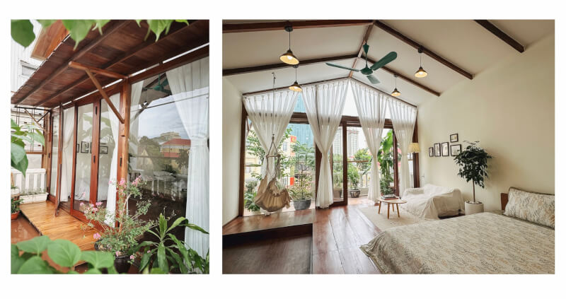 Mình đặc biệt thích cách họ chăm chút cho từng góc nhỏ trong căn nhà để khách lưu trú luôn có không gian thư giãn lý tưởng. Bạn có thể ngồi nhâm nhi tách trà buổi sáng và lắng nghe tiếng chim hót líu lo ngay giữa đô thị sầm uất. Mọi muộn phiền dường như tan biến khi chúng ta được hòa mình vào bầu không khí trong lành và dễ chịu tại nơi này.