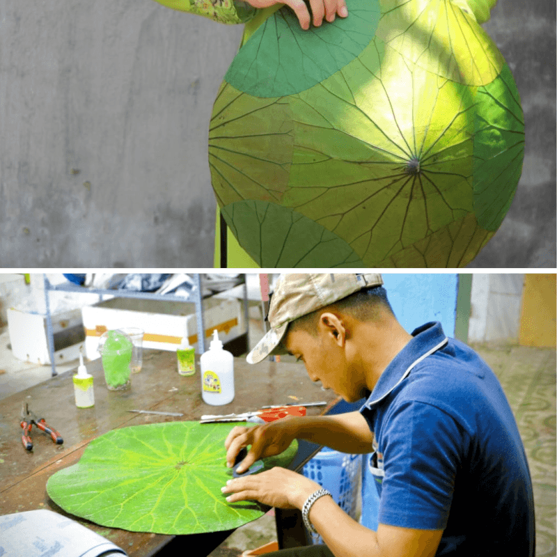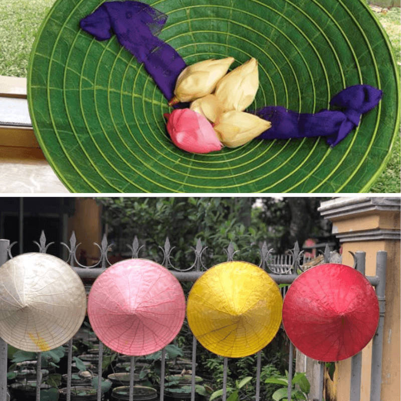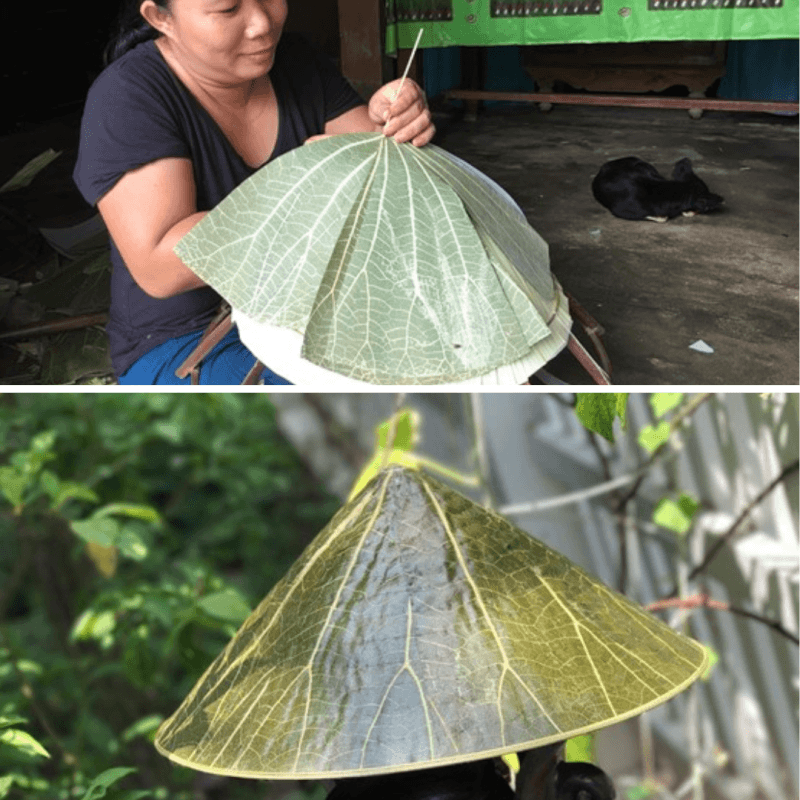 Để tạo nên một chiếc nón đạt chuẩn, khâu lựa chọn lá sen tươi là bước khởi đầu cực kỳ quan trọng. Những chiếc lá được tuyển chọn kỹ lưỡng sẽ trải qua quá trình xử lý bằng hóa chất đặc biệt để giữ lại sắc xanh nguyên bản. Công đoạn này đòi hỏi sự kiên nhẫn và kỹ thuật cao để các đường vân lá vẫn còn hiện rõ mồn một.